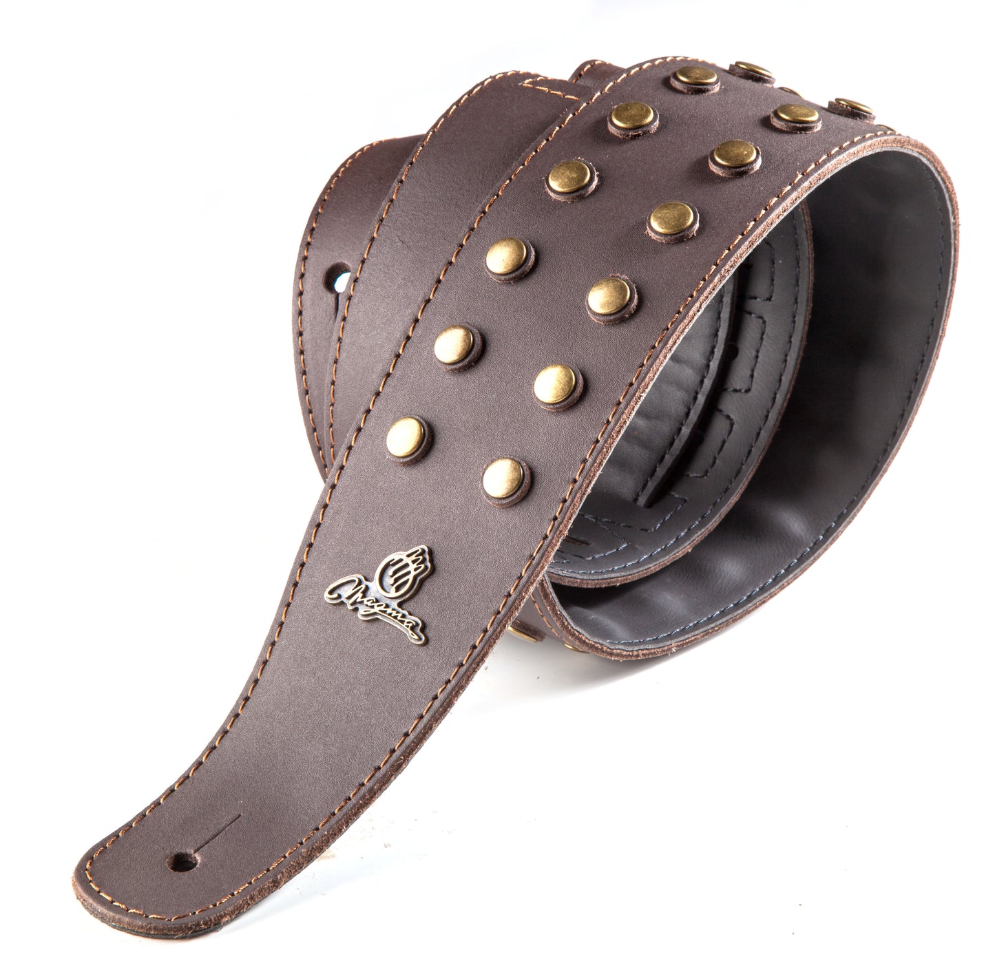 Magma Leathers 2.52" Delux Argentinean bronze round metal inlays leather Guitar Strap Brown (07MH02.)