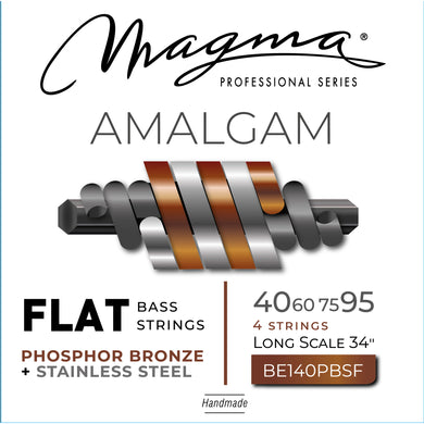 Magma Electric Bass Strings Extra Light+ - AMALGAM Phosphor Bronze/Stainless Steel FLAT Wound- Long Scale 34" Set, .040 - .095 (BE140PBSF) 1 Set