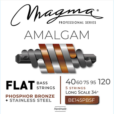 Magma Electric Bass Strings Extra Light- AMALGAM Phosphor Bronze/Stainless Steel FLAT Wound- Long Scale 34" 5 Strings Set, .040 - .120 (BE145PBSF) 1 Set