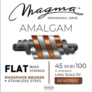 Magma Electric Bass Strings Medium Light - AMALGAM Phosphor Bronze/Stainless Steel FLAT Wound- Long Scale 34" Set, .045 - .100 (BE160PBSF) 1 Set