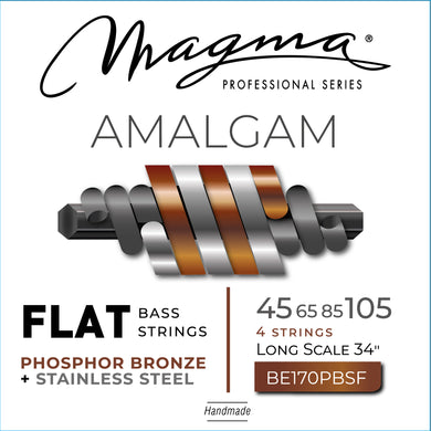 Magma Electric Bass Strings Medium - AMALGAM Phosphor Bronze/Stainless Steel FLAT Wound- Long Scale 34" Set, .045 - .105 (BE170PNSF) 1 Set