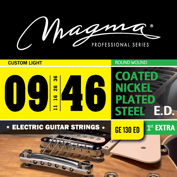 Magma Electric Guitar Strings Regular Light Gauge COATED Nickel-Plated Steel Set, .009 - .046 (GE130ED)