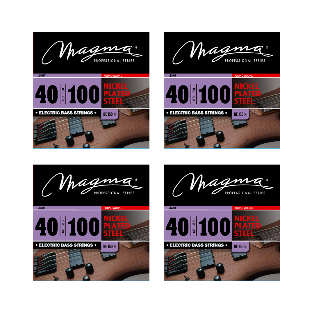 Magma Electric Bass Strings Light - Nickel Plated Steel Round Wound - Long Scale 34" Set, .040 - .100 (BE150N)