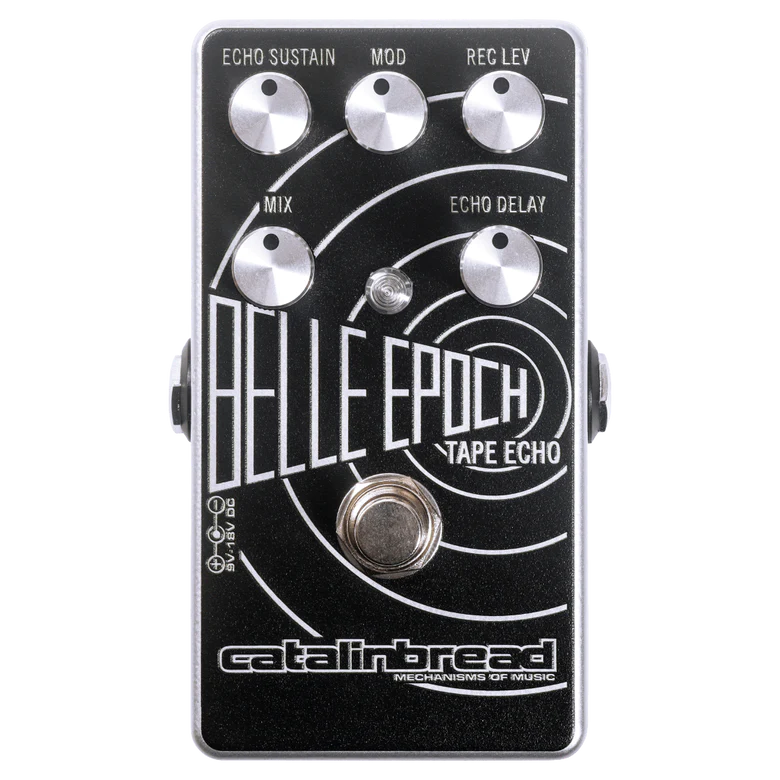 The Catalinbread Belle Epoch Tape Echo, has tape echo sounds so authentic you’d swear there was tape inside the pedal! Inspired by the Maestro Echoplex, EP-3 model, perhaps the most famous tape delay ever, the Belle Epoch features everything we love about the EP-3 in a small, maintenance free pedal format. We felt that a “tape echo” pedal was much more than just a standard digital delay with some “filtering” on the repeats. There are a lot of subtle and not-so-subtle traits of the Echoplex that needed to be implemented in order to be authentic. The preamp, the self-oscillation character, the ability to control the “record level” of the signal hitting “tape”, the wow and flutter, the way the repeats decay, the way the circuit interfaces with the amp and other pedals – all these things were important to get right. The original unit was used as a musical instrument unto itself and this is what we captured with the Belle Epoch.