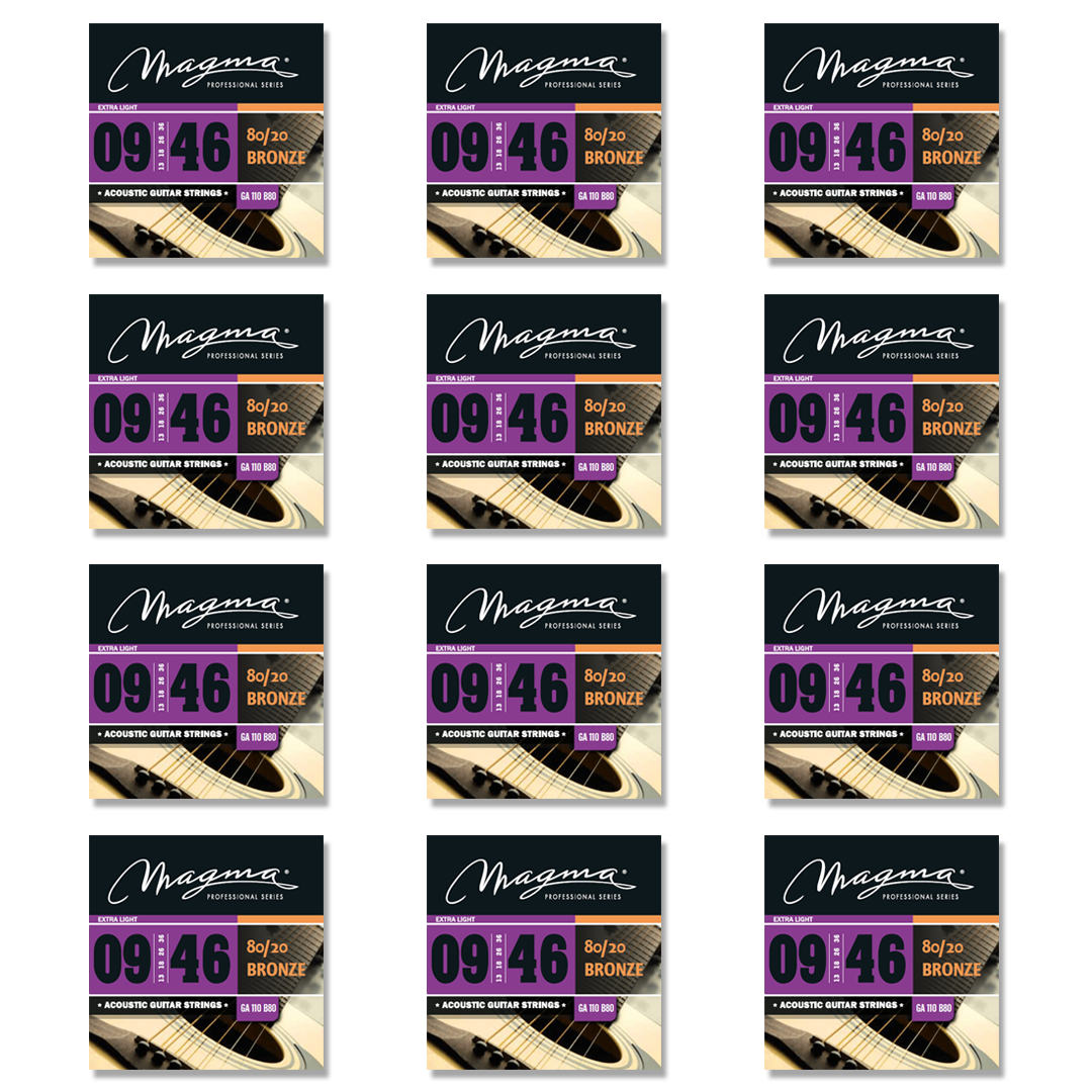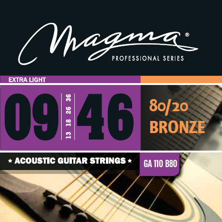 Magma Acoustic Guitar Strings Extra Light Gauge 80/20 Bronze Set, .009 - .046 (GA110B80)
