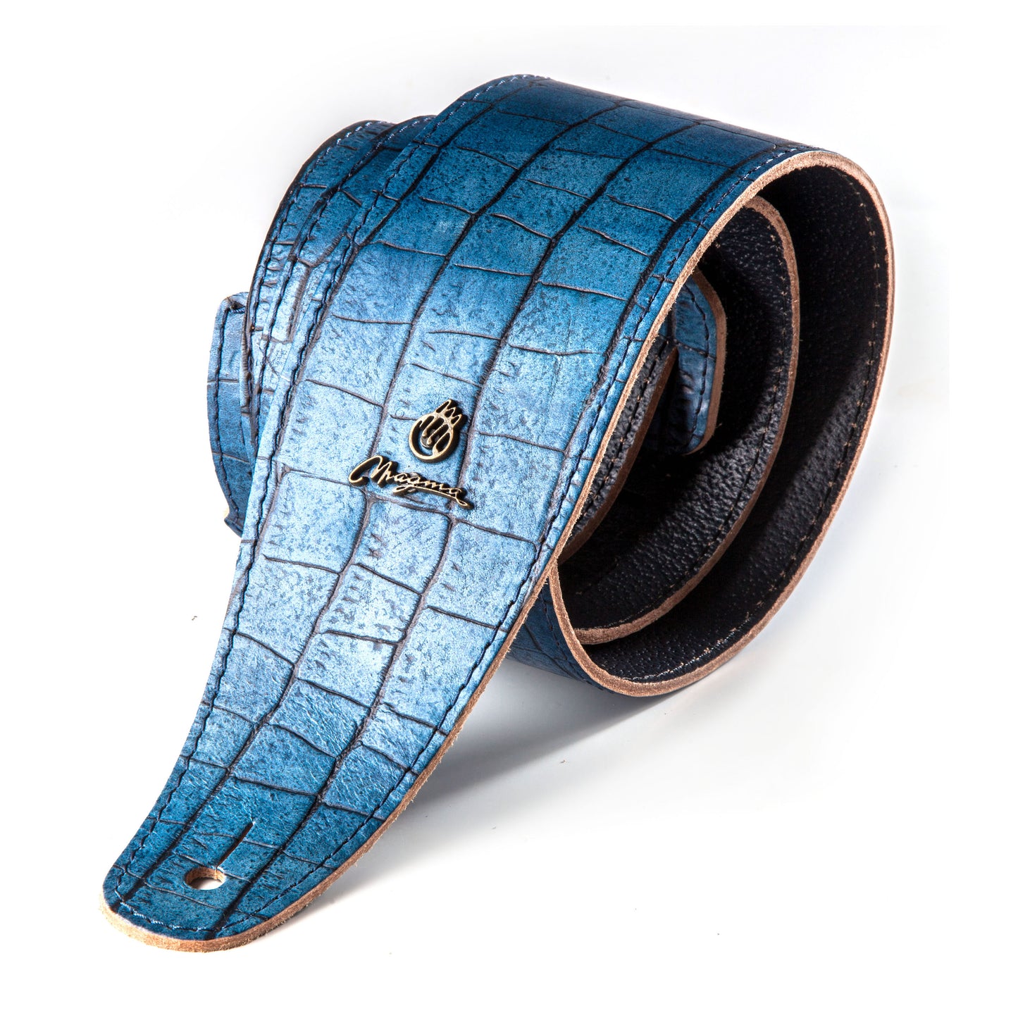 Magma Leathers 2.52" Delux Argentinean Leather Guitar Strap Iguana Light Blue (07ML03.)