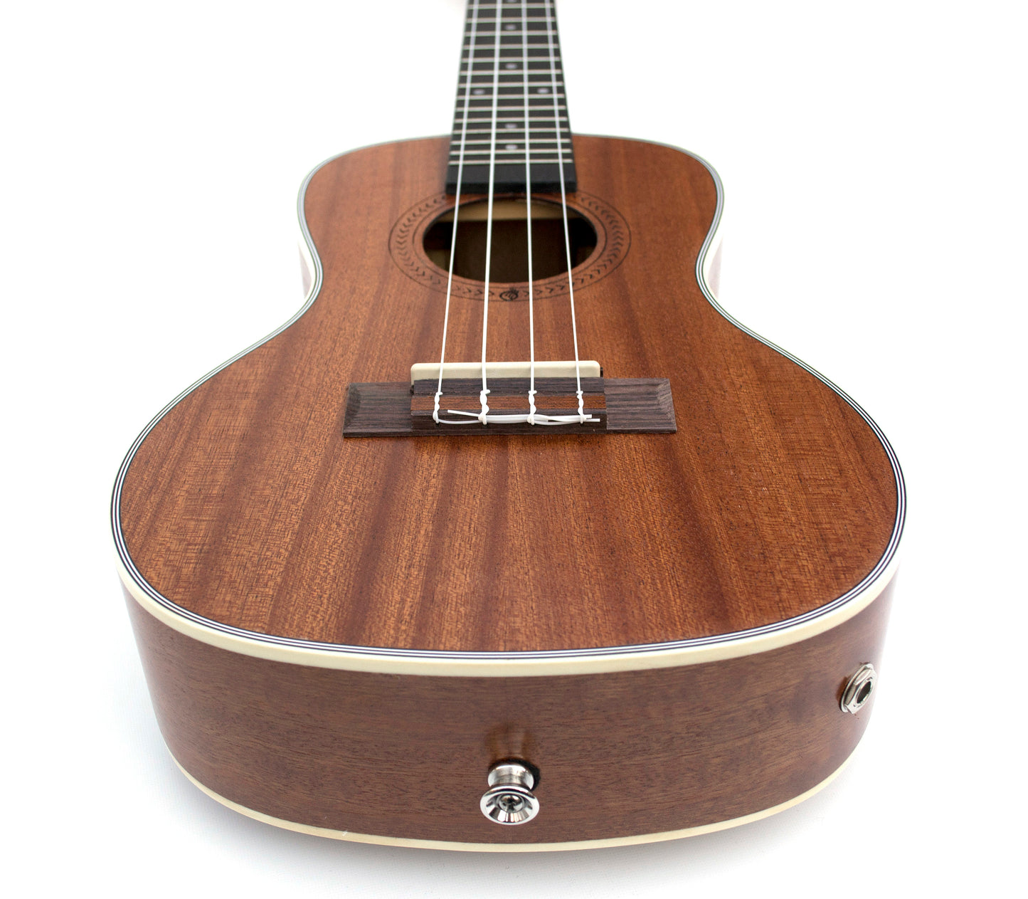 Sapeli body with rosewood fingerboard and bridge. Mahogany neck. With ivory Filete. Matte finish. With case. Traditionally designed, they have mellow high tones and soft low tones.  Magma Music Strings. Sizes: concert, tenor and soprano. With and without EQ.