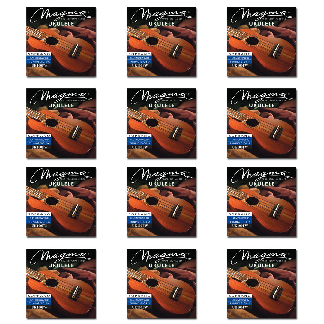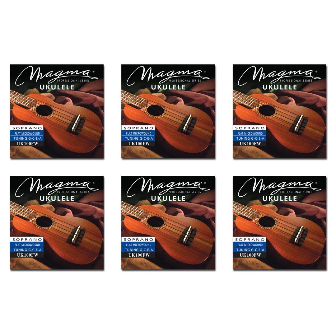 Magma Ukulele strings are made with high quality materials that provide for brilliant sound, rich tone and perfect intonation. They are offered in five different sets: 1) unique microwound strings of exclusive design to enrich the sound quality, 2) perfectly calibrated clear nylon strings, 3) black nylon strings, 4) "nylwhite" special synthetic material strings and 5) black light active fluorescent nylon strings