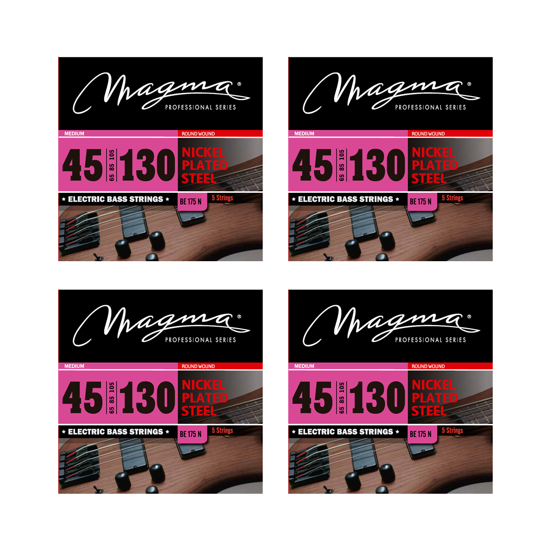 Magma Electric Bass Strings Medium - Nickel Plated Steel Round Wound - Long Scale 34" 5 Strings Set, .045 - .130 (BE175N)