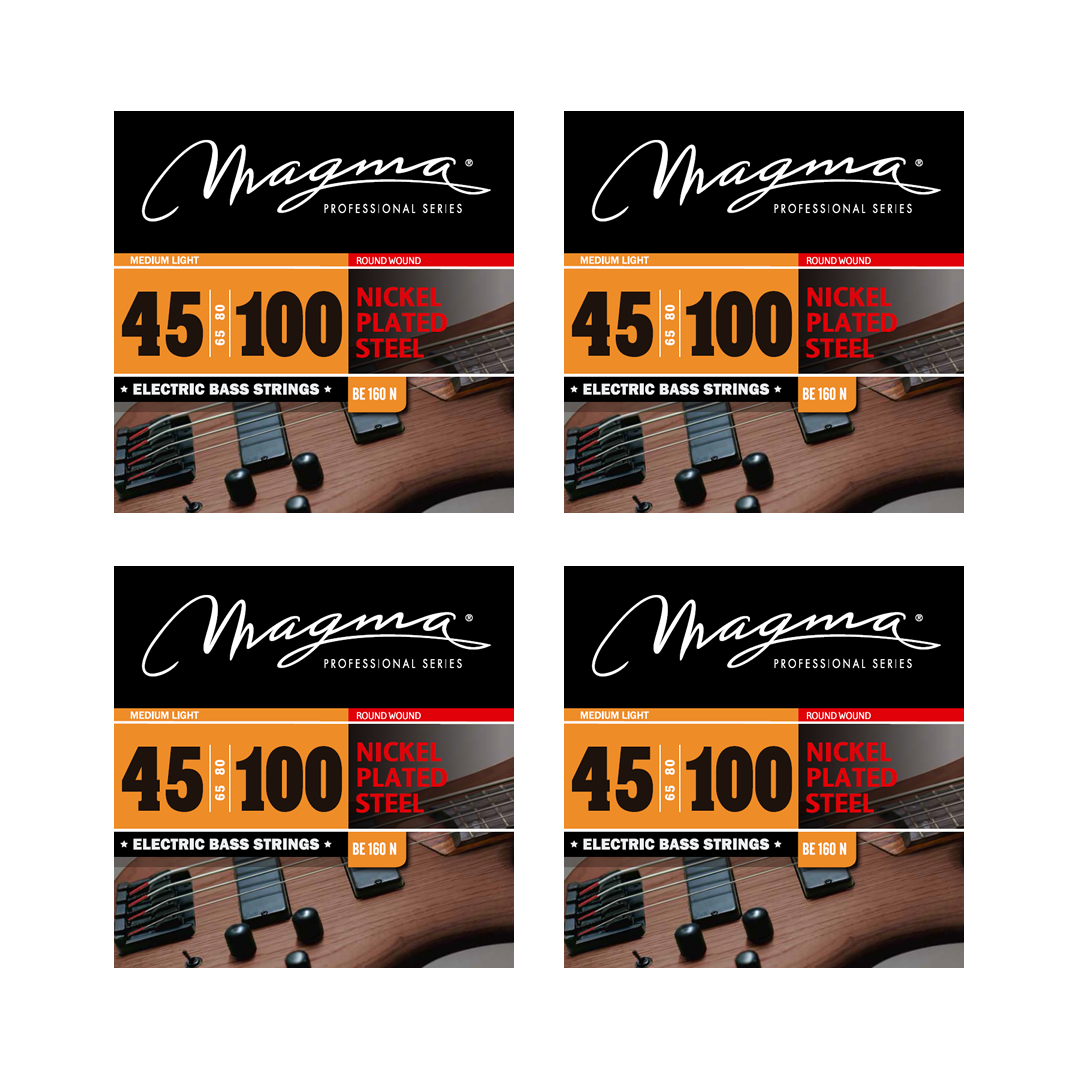 Magma Electric Bass Strings Medium Light - Nickel Plated Steel Round Wound - Long Scale 34" Set, .045 - .100 (BE160N)