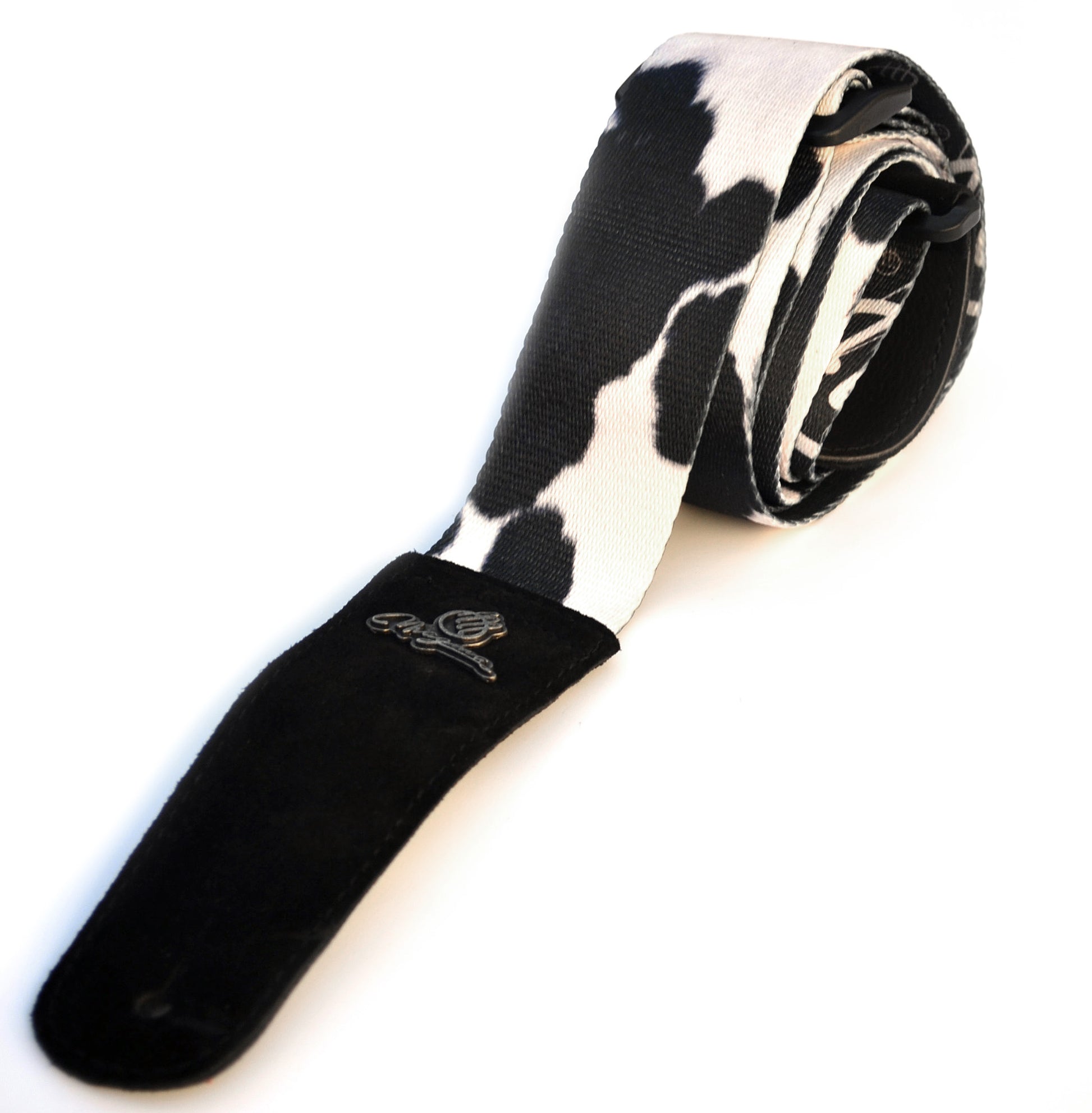 Magma Leathers 2" Soft-hand Polyester Guitar Strap Sublimation-Printed with Cow Design, Genuine Leather Ends (07MS02V.)