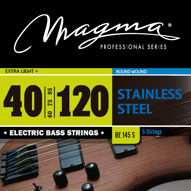 Magma Electric Bass Strings Extra Light - Stainless Steel Round Wound - Long Scale 34" 5 Strings Set, .040 - .120 (BE145S)