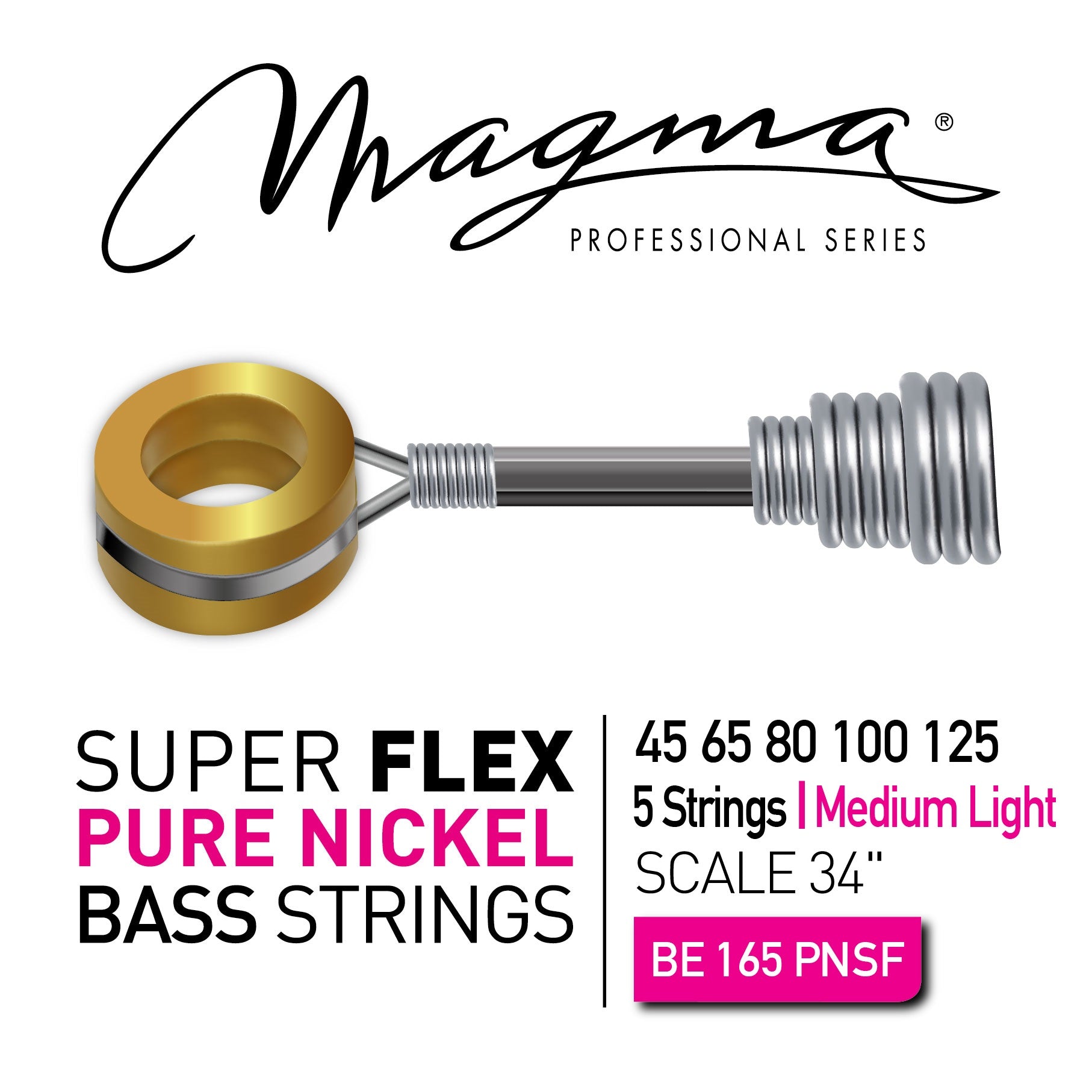 Magma Electric Bass Strings Medium Light - Pure Nickel Super Flex - Long Scale 34" 5 Strings Set, .045 - .125 (BE165PNSF) 1 Set