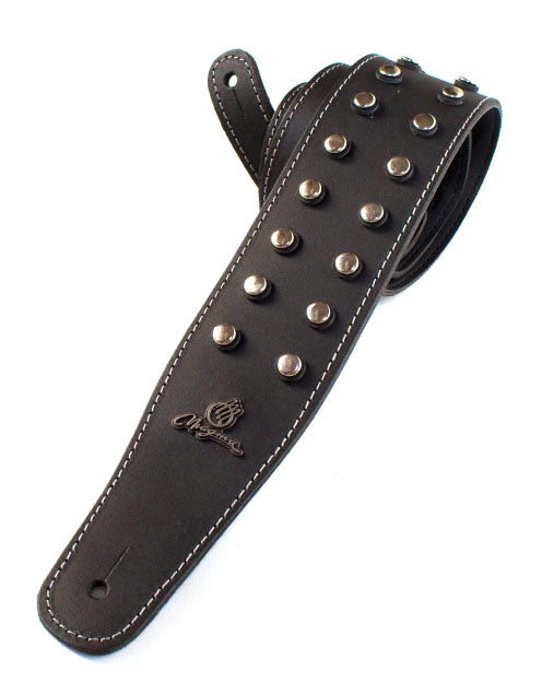 Magma Leathers 2.52" Delux Argentinean nickel round metal inlays leather Guitar Strap Black (07MH01.)