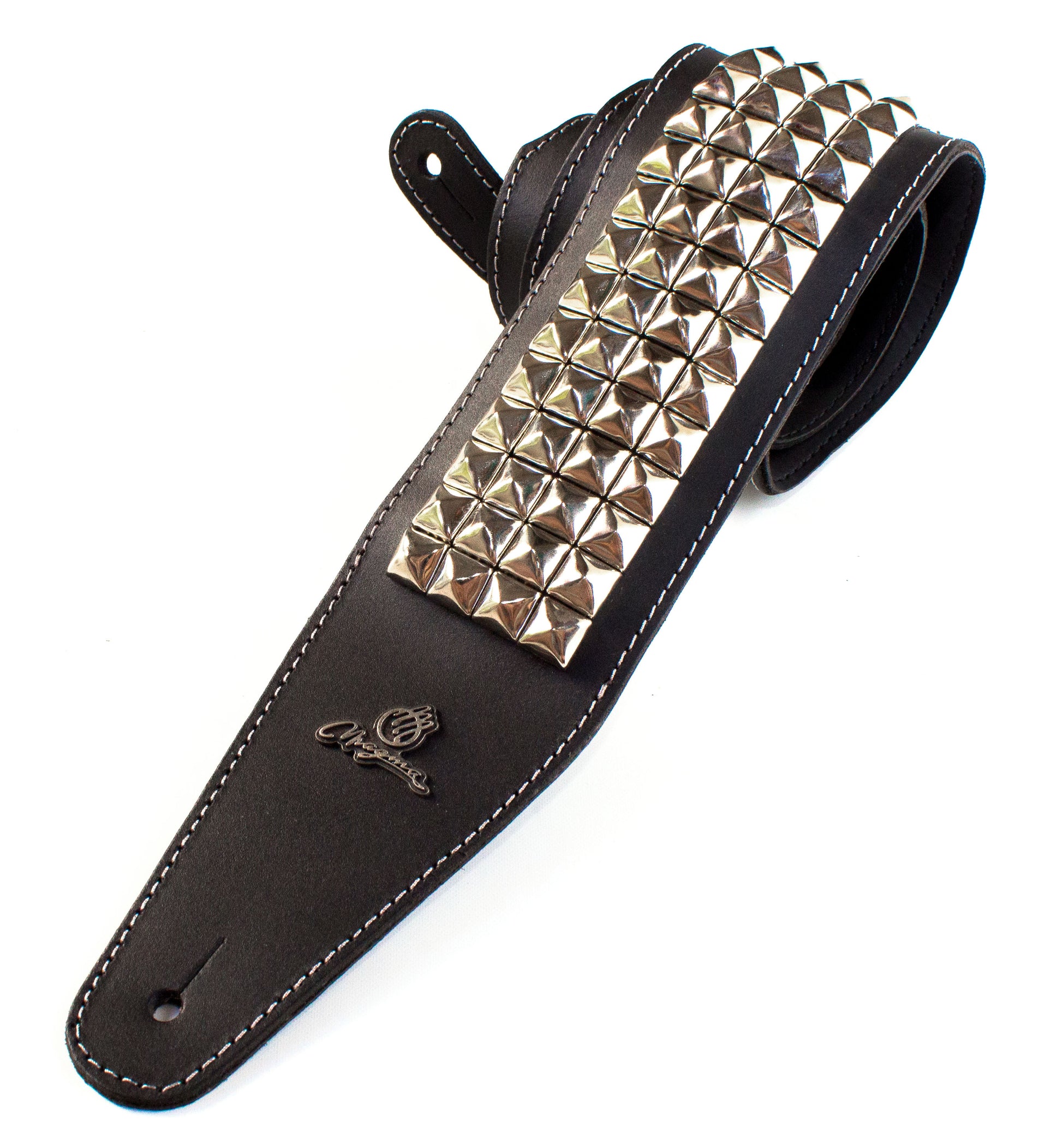 Magma Leathers 3.15" Delux Argentinean PYRAMID NICKEL INLAYS Black Leather Guitar Strap (07MJ01B.)