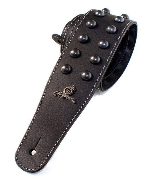 Magma Leathers 2.52" Delux Argentinean  round black metal inlays leather Guitar Strap Black (07MG03.)